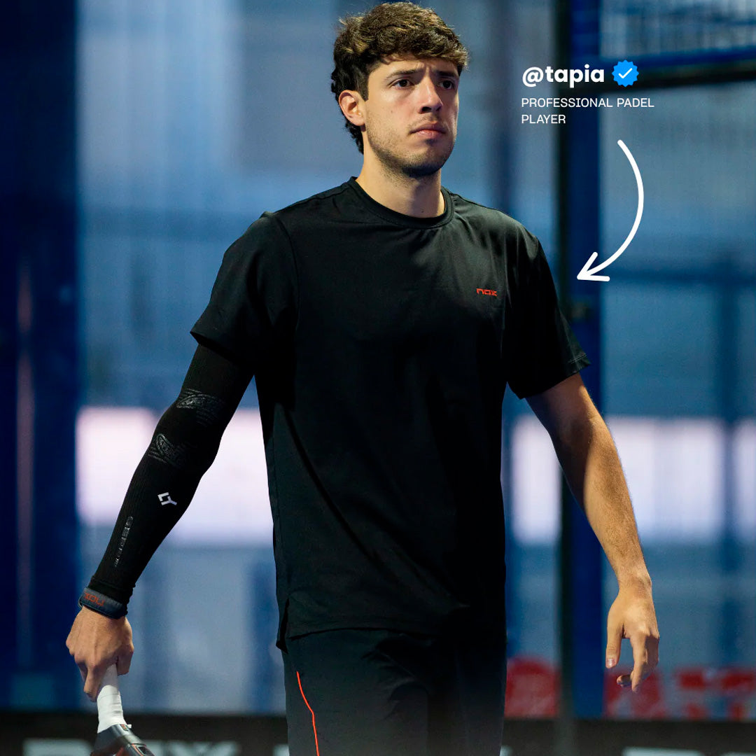NO-STRAIN is the first biomechanical sleeve designed for the reduction of vibrations that cause inflammatory problems and injuries in many sports, including cycling, running, golf, tennis, baseball, basketball, volleyball, padel, hockey, motorcycling, motoring, football, weightlifting and many others. It protects and supports the elbow, forearm and all tendon and muscle parts of the athlete, thanks to the stabilisation generated by the compression of the fabric combined with the biomechanical applications, which provide immediate relief from vibratory stress with consequent reduction of inflammatory disorders and injuries.